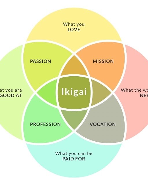 Ikigai - the thing that makes you get up off your bed every morning and fuels your life. Ikigai = Mission + Passion + Vocation + Profession; Quick read to help you find your Ikigai.